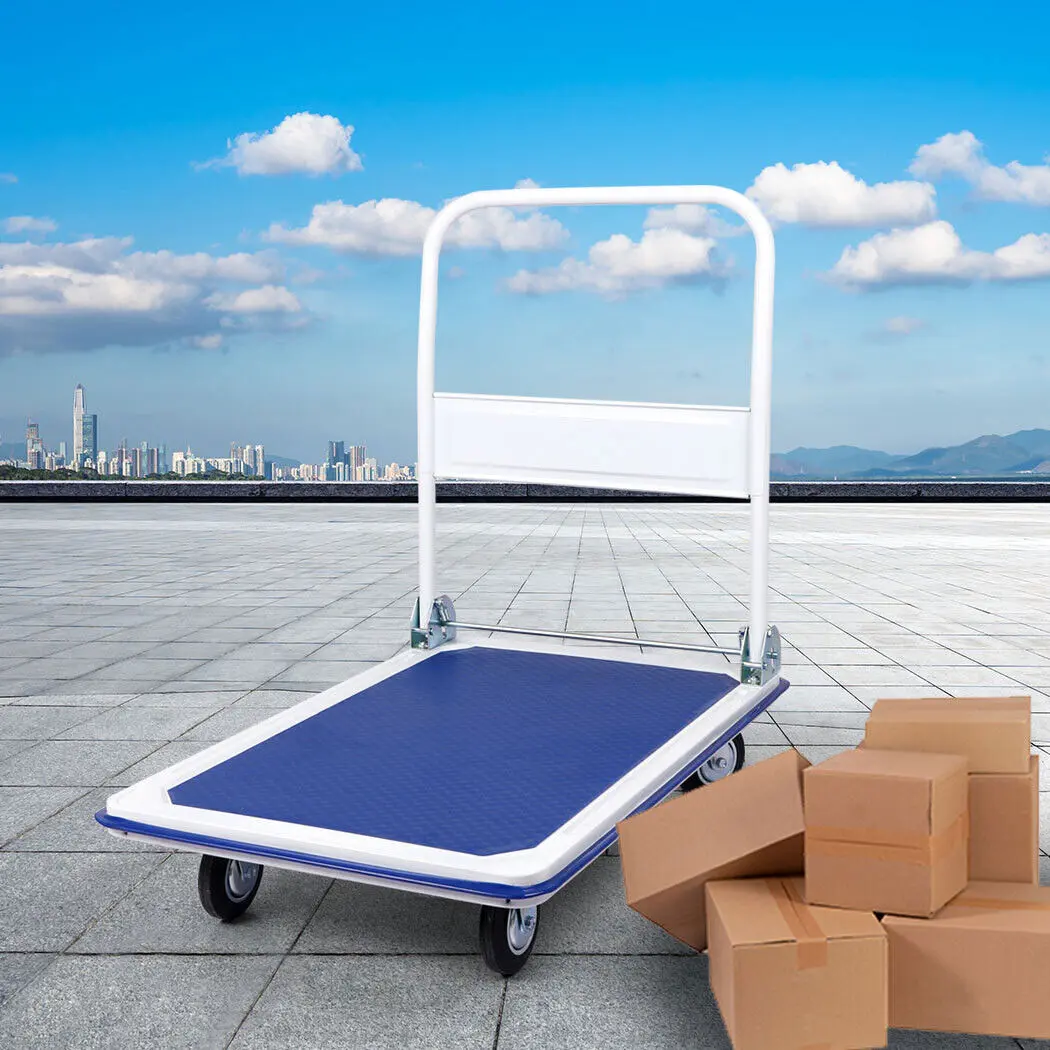 Ưu điểm: Xe đẩy nhẹ, Bánh xe PU loại tốt, càng bánh xe thép dày, đẩy nhẹ, Sàn nhựa dày chịu tải tốt bền bỉ theo thời gian, có thể gấp gọn khi không sử dụng.
